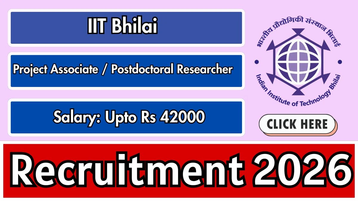 Indian Institute of Technology Bhilai (IIT Bhilai) Recruitment 2026 for 2 posts of Project Associate / Postdoctoral Researcher. Candidates with M.Tech/M.E. or PhD Can Apply Online. The last date to apply online is 28-02-2026. The candidate shall apply online through IIT Bhilai official website iitbhilai.ac.in.