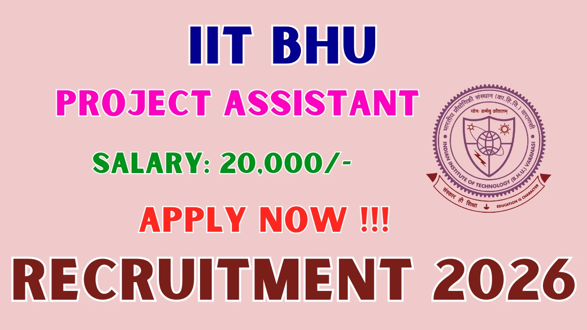 Indian Institute of Technology BHU (IIT BHU) has released an official notification for the recruitment of 01 Project Assistant Posts. Interested and eligible candidates can apply Online through the official IIT BHU website. The last date to submit the application form is 20-01-2026. In this article, you’ll find the IIT BHU Project Assistant Posts recruitment details, including eligibility criteria, age limit, salary structure, selection process, application steps, and direct links to the official notification and Online application form.