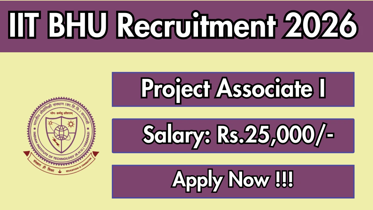 The Indian Institute of Technology BHU (IIT BHU) Recruitment 2026 for posts of 01 Project Associate I. Candidates with B.Sc, M.Sc Can Apply Offline. The Offline application opens on 05-01-2026, and closes on 04-02-2026. The candidate shall apply Offline through IIT BHU website, iitbhu.ac.in.
