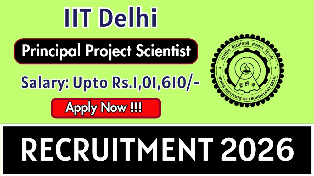 Indian Institute of Technology Delhi (IIT Delhi) has released an official notification for the recruitment of 01 Principal Project Scientist Posts. Interested and eligible candidates can apply Offline through the official IIT Delhi website. The last date to submit the application form is 14-01-2026. In this article, you’ll find the IIT Delhi Principal Project Scientist Posts recruitment details, including eligibility criteria, age limit, salary structure, selection process, application steps, and direct links to the official notification and Offline application form.