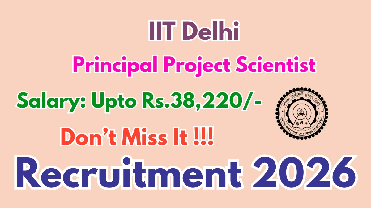 Indian Institute of Technology Delhi (IIT Delhi) Recruitment 2026: Indian Institute of Technology Delhi is conducting a Walk-in Interview for 1 Principal Project Scientist posts. This recruitment provides an excellent opportunity for eligible candidates to attend the interview directly without any prior online application.