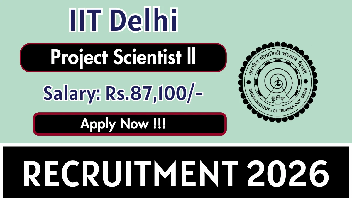 Indian Institute of Technology Delhi (IIT Delhi) has released an official notification for the recruitment of 01 Project Scientist ll Posts. Interested and eligible candidates can apply Offline through the official IIT Delhi website. The last date to submit the application form is 18-02-2026. In this article, you’ll find the IIT Delhi Project Scientist ll Posts recruitment details, including eligibility criteria, age limit, salary structure, selection process, application steps, and direct links to the official notification and Offline application form.