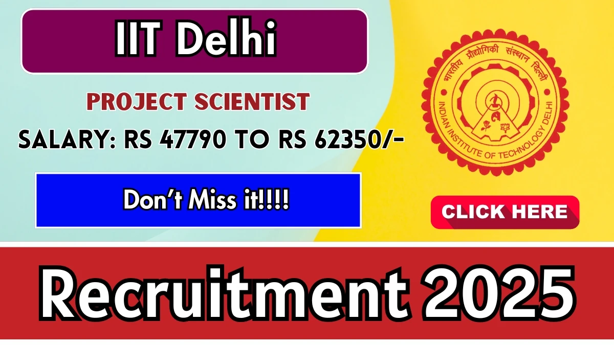 Indian Institute of Technology Delhi (IIT Delhi) has released an official notification for the recruitment of 06 Project Scienlis Posts. Interested and eligible candidates can apply Offline through the official IIT Delhi website. The last date to submit the application form is 08-10-2025. In this article, you’ll find the IIT Delhi Project Scienlis Posts recruitment details, including eligibility criteria, age limit, salary structure, selection process, application steps, and direct links to the official notification and Offline application form.