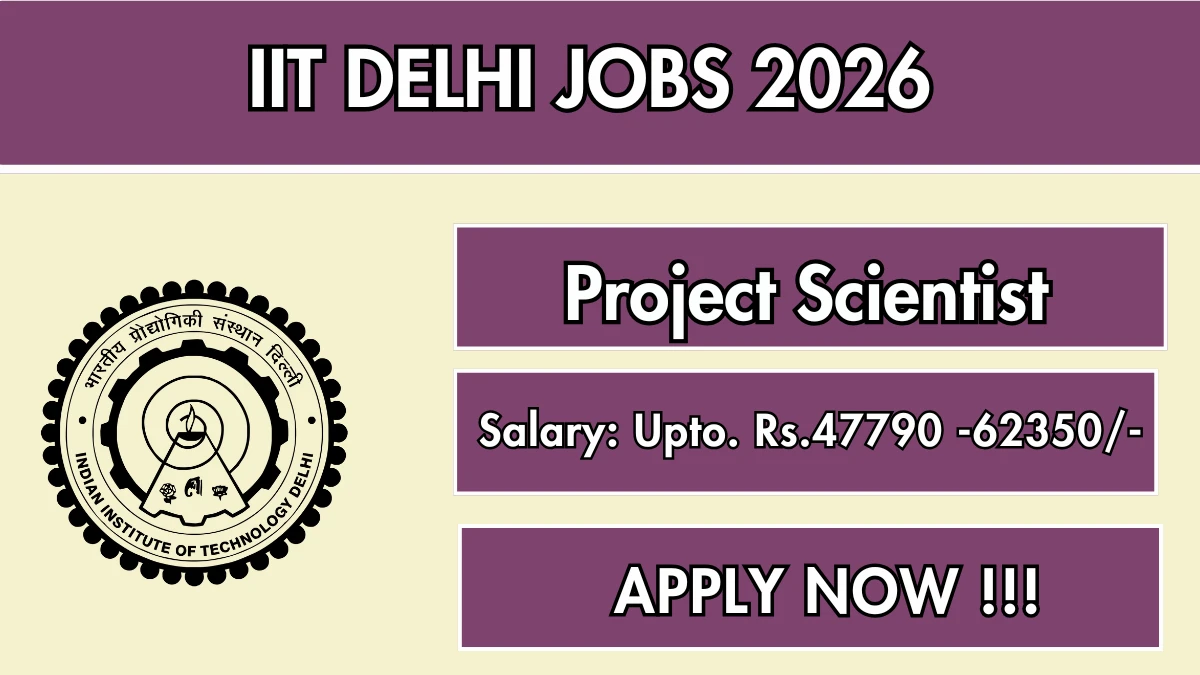 Indian Institute of Technology Delhi (IIT Delhi) has released an official notification for the recruitment of 01 Project Scientist Posts. Interested and eligible candidates can apply Online through the official IIT Delhi website. The last date to submit the application form is 28-02-2026. In this article, you’ll find the IIT Delhi Project Scientist Posts recruitment details, including eligibility criteria, age limit, salary structure, selection process, application steps, and direct links to the official notification and Online application form.