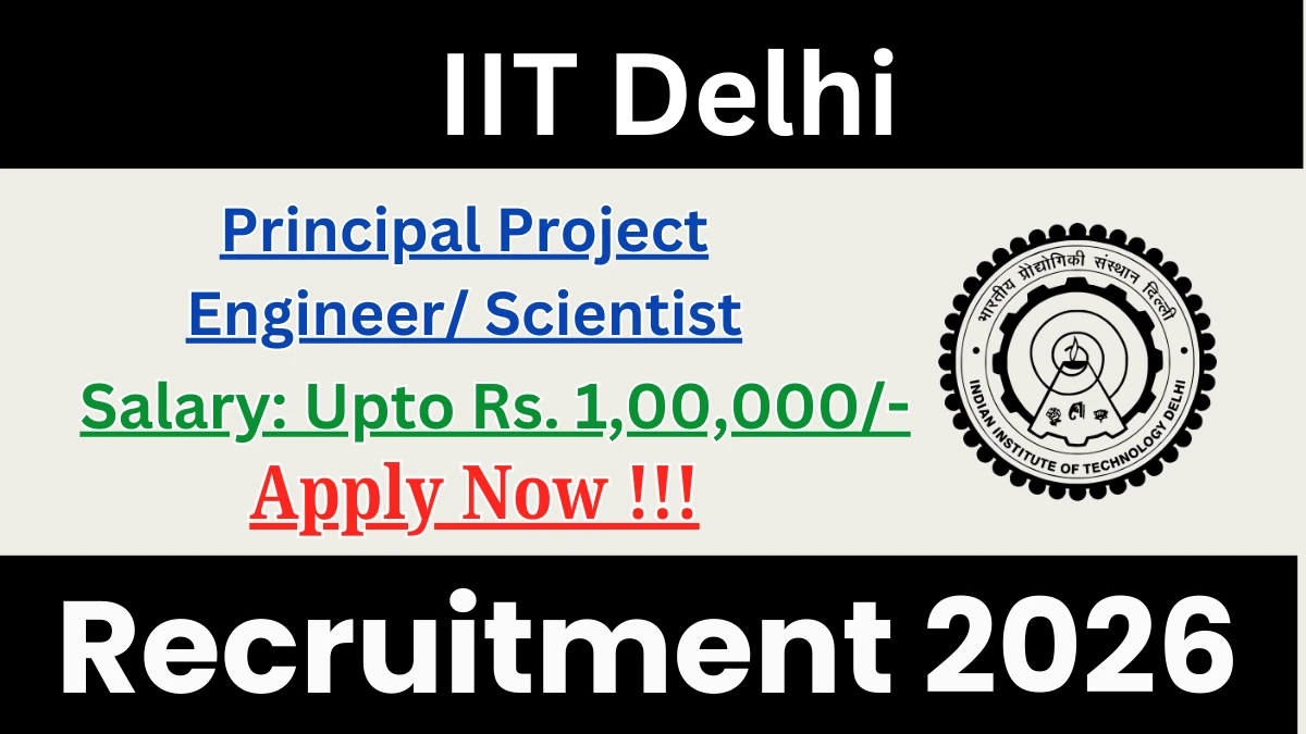 Indian Institute of Technology Delhi (IIT Delhi) has released an official notification for the recruitment of 04 Principal Project Engineer/ Scientist Posts. Interested and eligible candidates can apply Offline through the official IIT Delhi website. The last date to submit the application form is 06-02-2026. In this article, you’ll find the IIT Delhi Principal Project Engineer/ Scientist Posts recruitment details, including eligibility criteria, age limit, salary structure, selection process, application steps, and direct links to the official notification and Offline application form.