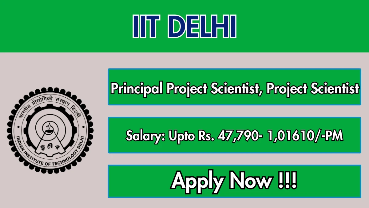 The Indian Institute of Technology Delhi has released the IIT Delhi Project Scientists Recruitment 2026 notification for 2 contractual posts including Principal Project Scientist and Project Scientist under an institute research project, with the project duration expected to continue up to 30 October 2028.