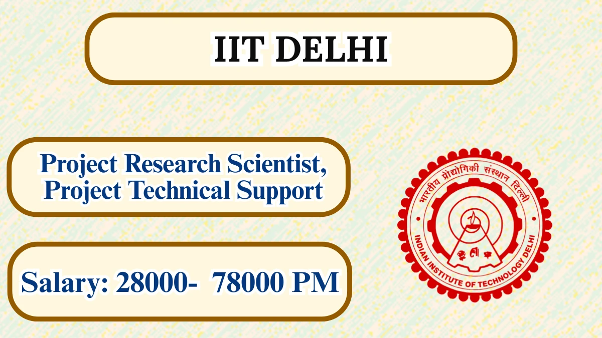 IIT Delhi Project Research Scientist, Project Technical Support Recruitment 2026 Overview