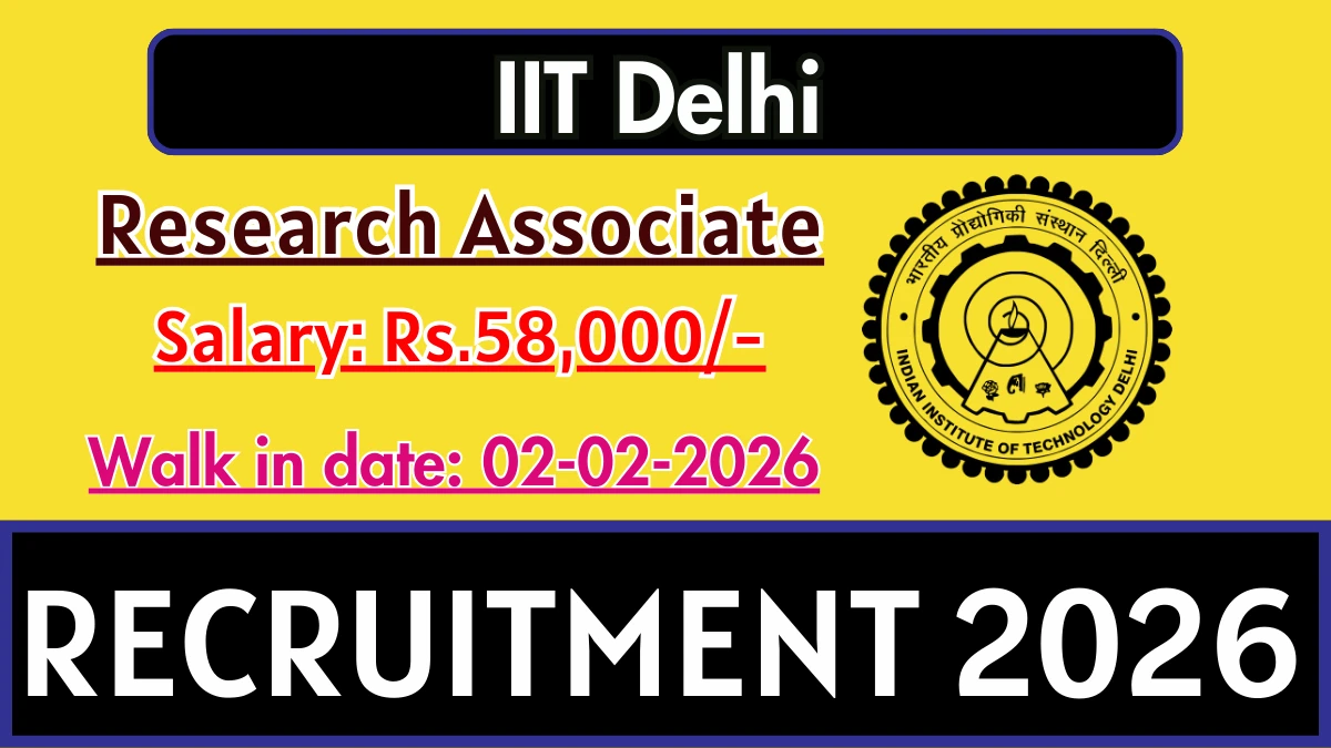 Indian Institute of Technology Delhi (IIT Delhi) Recruitment 2026 for 01 posts of Research Associate. Candidates with M.Phil/Ph.D Can attend the walkin. The Walk-in on 02-02-2026. For detailed information please visit IIT Delhi official website, ird.iitd.ac.in.