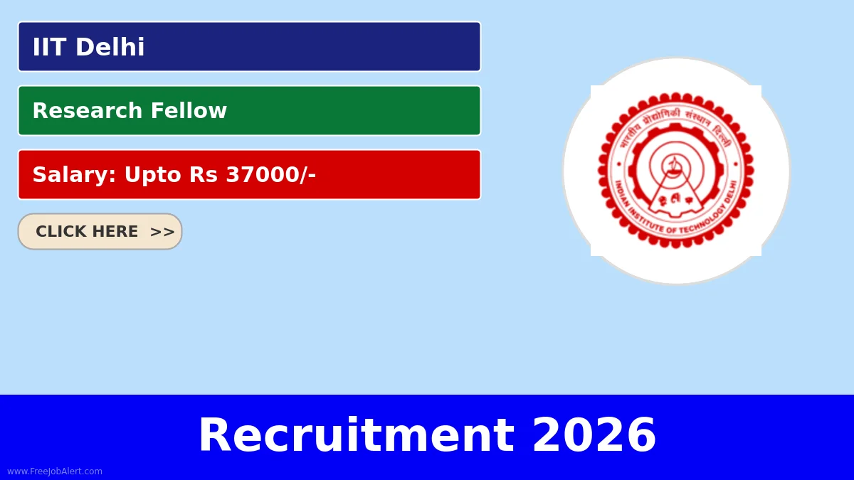Indian Institute of Technology Delhi (IIT Delhi) Recruitment 2026: Indian Institute of Technology Delhi has released the official notification for 1 Research Fellow posts, inviting applications from eligible candidates. This recruitment provides an excellent opportunity for candidates seeking research jobs.