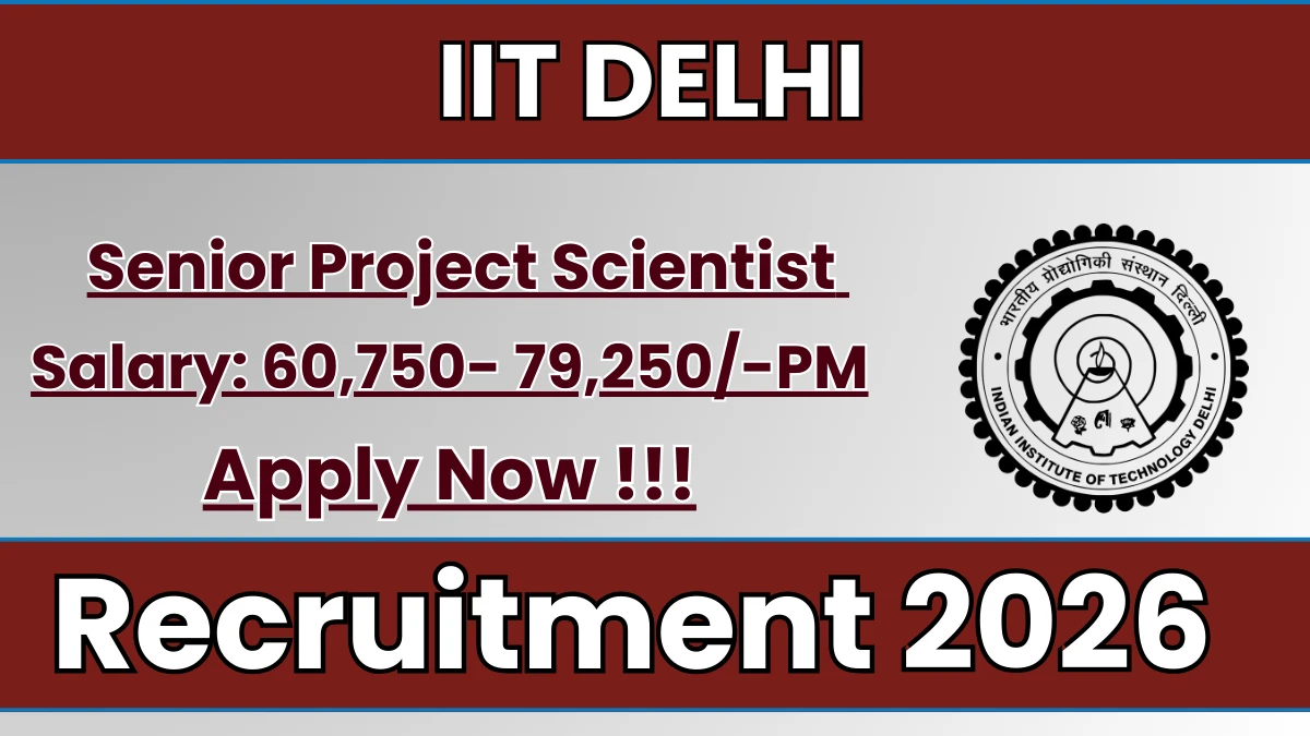 Indian Institute of Technology Delhi (IIT Delhi) has released an official notification for the recruitment of 01 Senior Project Scientist Posts. Interested and eligible candidates can apply Online through the official IIT Delhi website. The last date to submit the application form is 19-02-2026. In this article, you’ll find the IIT Delhi Senior Project Scientist Posts recruitment details, including eligibility criteria, age limit, salary structure, selection process, application steps, and direct links to the official notification and Online application form