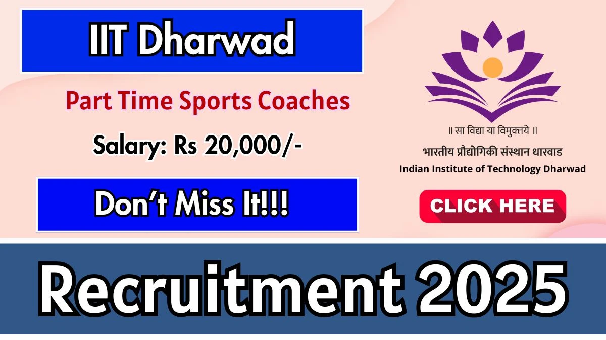Indian Institute of Technology Dharwad (IIT Dharwad) Recruitment 2025 for 03 posts of Part Time Sports Coaches. Candidates with Any Graduate, Diploma Can attend the walkin. The Walk-in interview on 27-10-2025. For detailed information please visit IIT Dharwad official website, iitdh.ac.in.