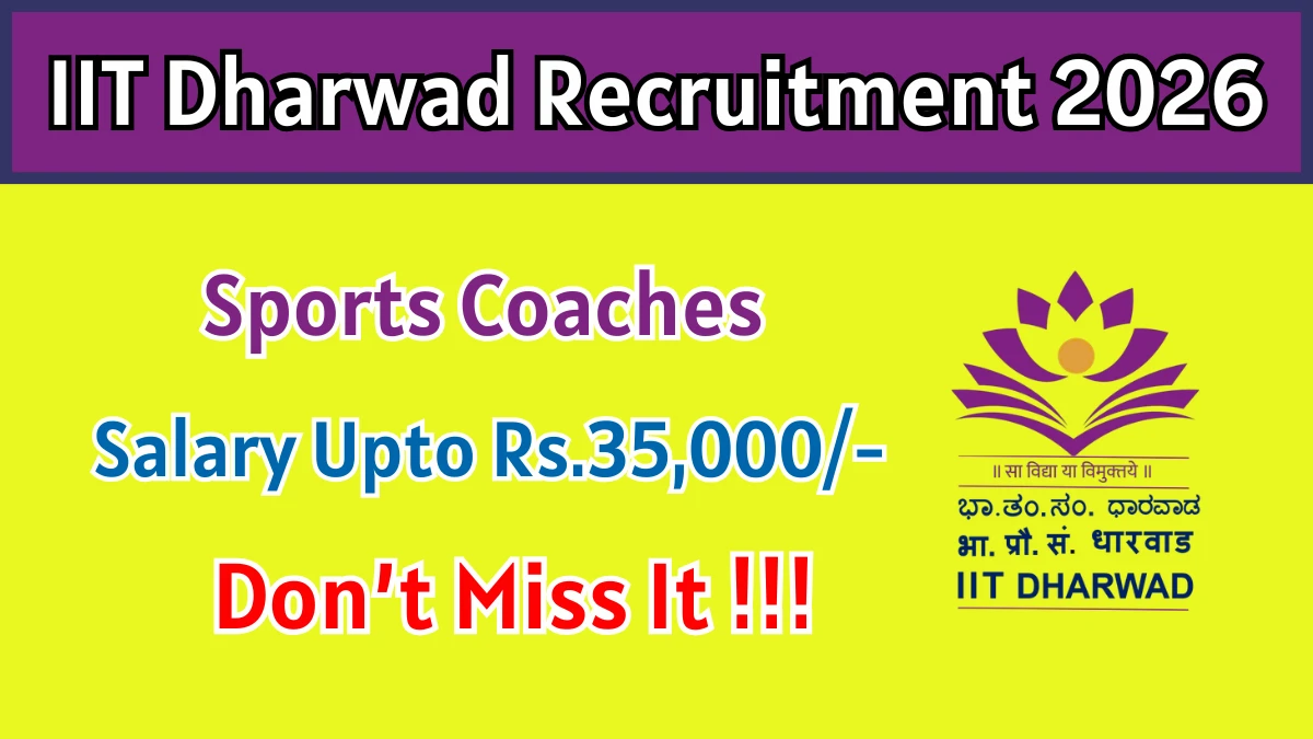 Indian Institute of Technology Dharwad (IIT Dharwad) has released an official notification for the recruitment of 06 Sports Coaches Posts. Interested and eligible candidates can apply Online through the official IIT Dharwad website. The last date to submit the application form is 02-03-2026. In this article, you’ll find the IIT Dharwad Sports Coaches Posts recruitment details, including eligibility criteria, age limit, salary structure, selection process, application steps, and direct links to the official notification and Online application form.