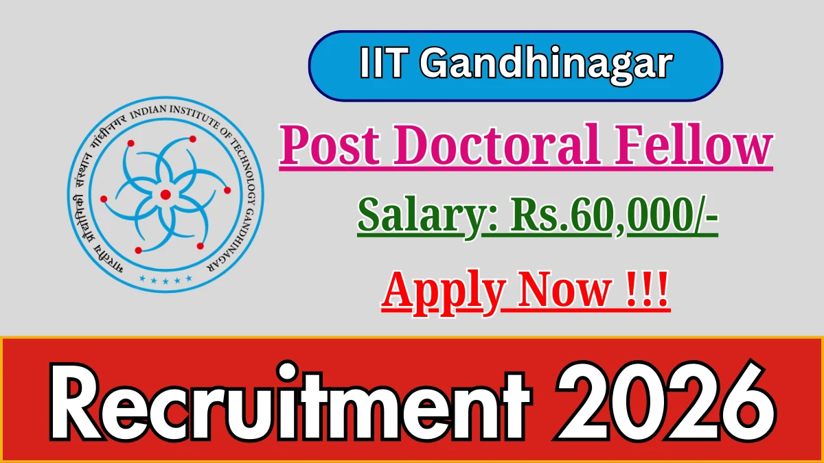 Indian Institute of Technology Gandhinagar (IIT Gandhinagar) has released an official notification for the recruitment of Post Doctoral Fellow Posts. Interested and eligible candidates can apply Online through the official IIT Gandhinagar website. The last date to submit the application form is 17-01-2026. In this article, you’ll find the IIT Gandhinagar Post Doctoral Fellow Posts recruitment details, including eligibility criteria, age limit, salary structure, selection process, application steps, and direct links to the official notification and Online application form.