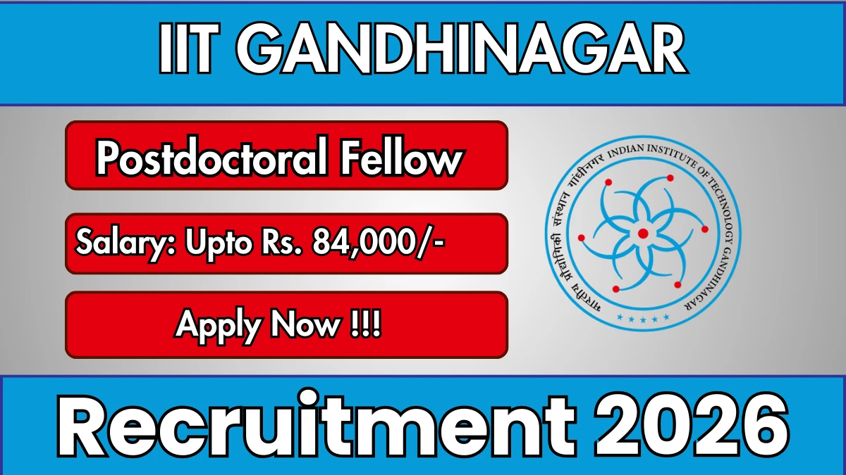 Indian Institute of Technology Gandhinagar (IIT Gandhinagar) has released an official notification for the recruitment of 01 Postdoctoral Fellow Posts. Interested and eligible candidates can apply Offline through the official IIT Gandhinagar website. The last date to submit the application form is 15-02-2026. In this article, you’ll find the IIT Gandhinagar Postdoctoral Fellow Posts recruitment details, including eligibility criteria, age limit, salary structure, selection process, application steps, and direct links to the official notification and Offline application form.