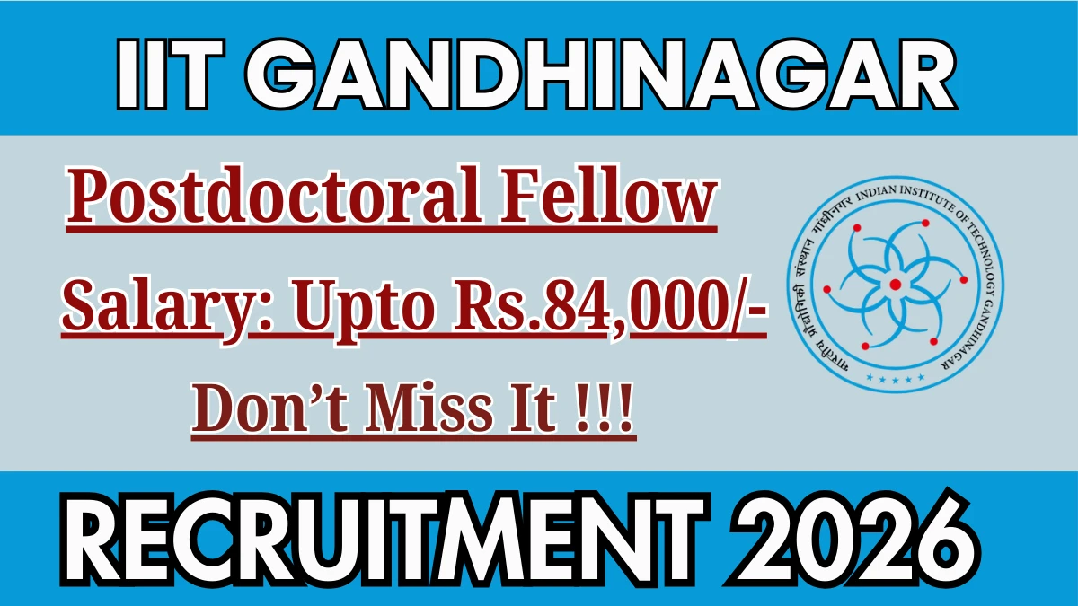 Indian Institute of Technology Gandhinagar (IIT Gandhinagar) has released an official notification for the recruitment of 01 Postdoctoral Fellow Posts. Interested and eligible candidates can apply Offline through the official IIT Gandhinagar website. The last date to submit the application form is 16-02-2026. In this article, you’ll find the IIT Gandhinagar Postdoctoral Fellow Posts recruitment details, including eligibility criteria, age limit, salary structure, selection process, application steps, and direct links to the official notification and Offline application form.