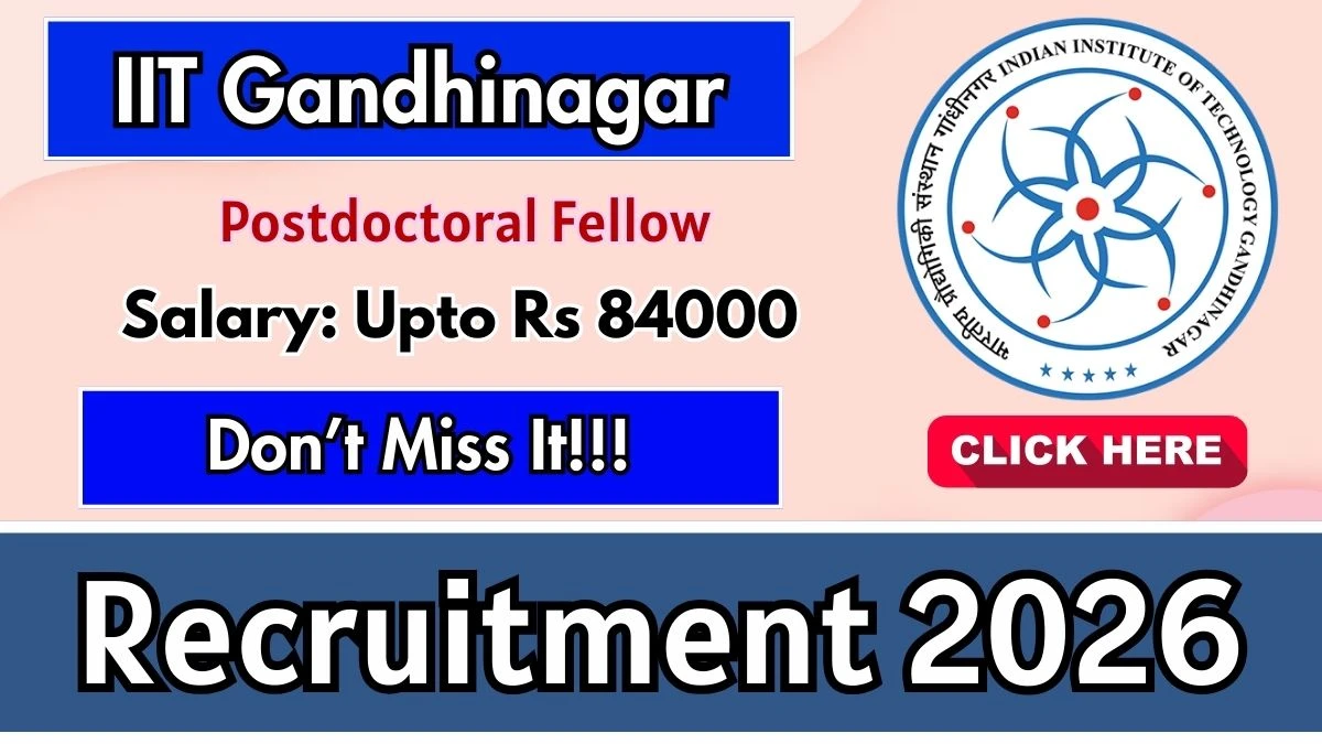 Indian Institute of Technology Gandhinagar (IIT Gandhinagar) has released an official notification for the recruitment of 01 Postdoctoral Fellow Posts. Interested and eligible candidates can apply Online through the official IIT Gandhinagar website. The last date to submit the application form is 15-02-2026. In this article, you’ll find the IIT Gandhinagar Postdoctoral Fellow Posts recruitment details, including eligibility criteria, age limit, salary structure, selection process, application steps, and direct links to the official notification and Online application form.