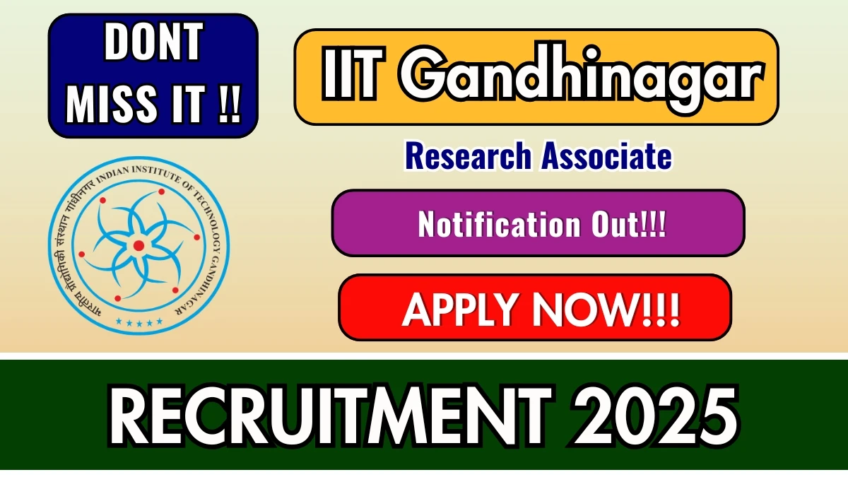 Indian Institute Of Technology Gandhinagar (IIT Gandhinagar) has released an official notification for the recruitment of Research Associate Posts. Interested and eligible candidates can apply Online through the official IIT Gandhinagar website. The last date to submit the application form is 20-10-2025. In this article, you’ll find the IIT Gandhinagar Research Associate Posts recruitment details, including eligibility criteria, age limit, salary structure, selection process, application steps, and direct links to the official notification and Online application form.