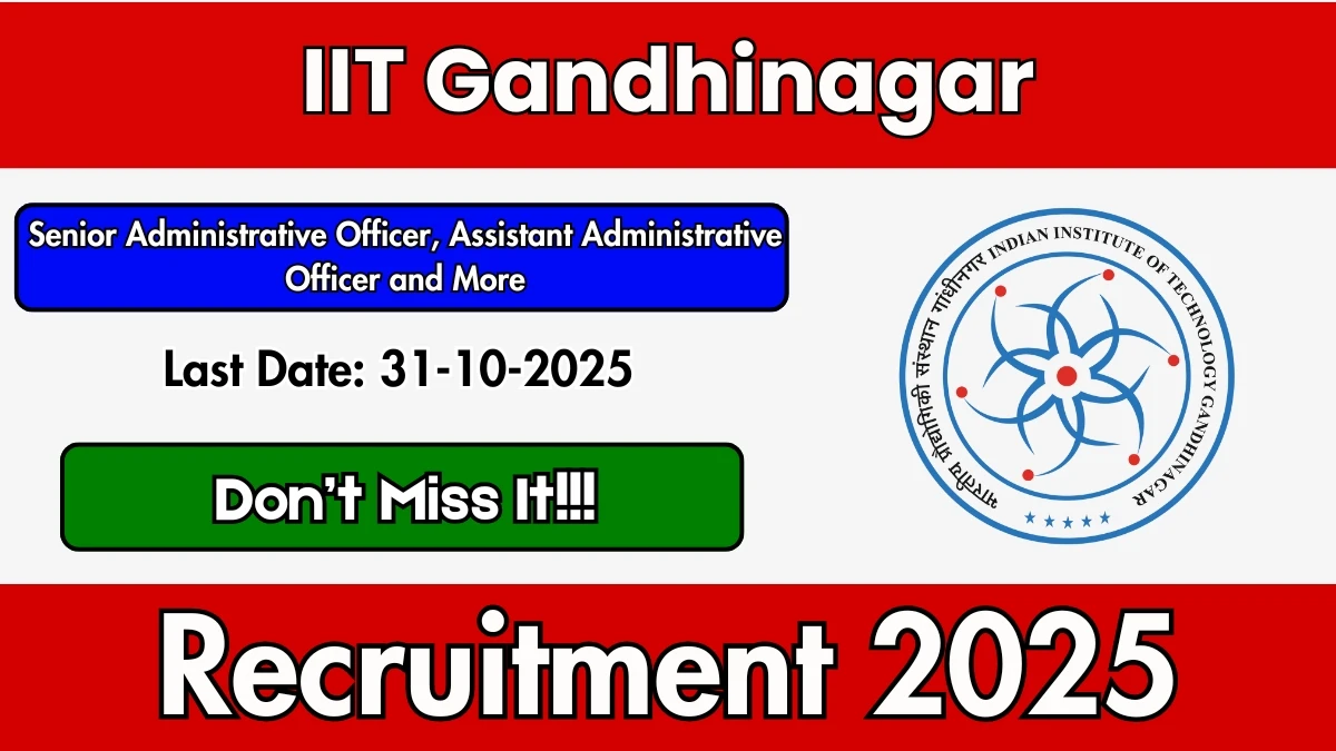 Indian Institute Of Technology Gandhinagar (IIT Gandhinagar) has released an official notification for the recruitment of 03 Senior Administrative Officer, Assistant Administrative Officer and More Posts. Interested and eligible candidates can apply Online through the official IIT Gandhinagar website. The last date to submit the application form is 31-10-2025. In this article, you’ll find the IIT Gandhinagar Senior Administrative Officer, Assistant Administrative Officer and More Posts recruitment details, including eligibility criteria, age limit, salary structure, selection process, application steps, and direct links to the official notification and Online application form.