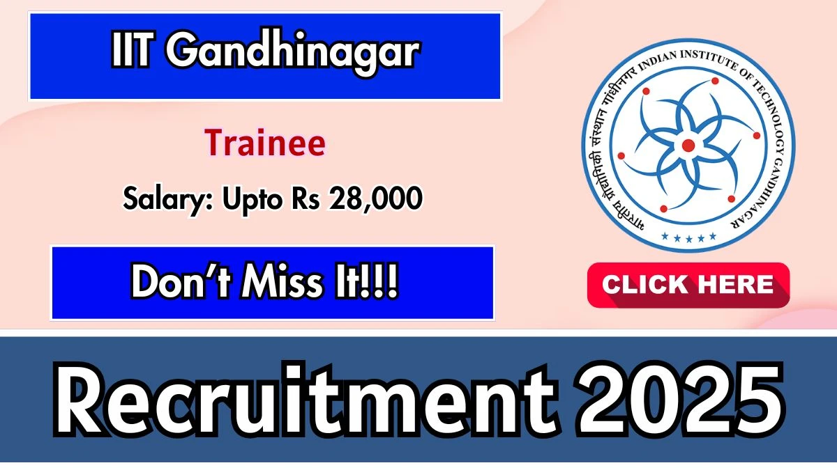 Indian Institute of Technology Gandhinagar (IIT Gandhinagar) has released an official notification for the recruitment of 01 Trainee Posts. Interested and eligible candidates can apply Offline through the official IIT Gandhinagar website. The last date to submit the application form is 03-12-2025. In this article, you’ll find the IIT Gandhinagar Trainee Posts recruitment details, including eligibility criteria, age limit, salary structure, selection process, application steps, and direct links to the official notification and Offline application form.