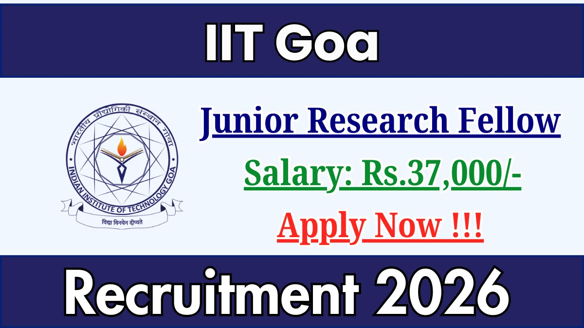 Indian Institute of Technology Goa (IIT Goa) has released an official notification for the recruitment of 01 Junior Research Fellow Posts. Interested and eligible candidates can apply Online through the official IIT Goa website. The last date to submit the application form is 17-02-2026. In this article, you’ll find the IIT Goa Junior Research Fellow Posts recruitment details, including eligibility criteria, age limit, salary structure, selection process, application steps, and direct links to the official notification and Online application form.