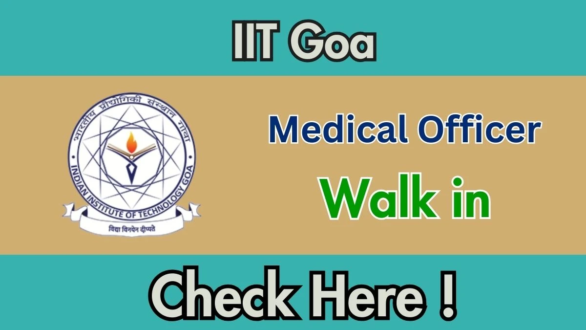 Indian Institute of Technology Goa (IIT Goa) Recruitment 2026 for 01 posts of Medical Officer. Candidates with MBBS Can attend the walkin. The Walk-in on 21-01-2026. For detailed information please visit IIT Goa official website, iitgoa.ac.in.