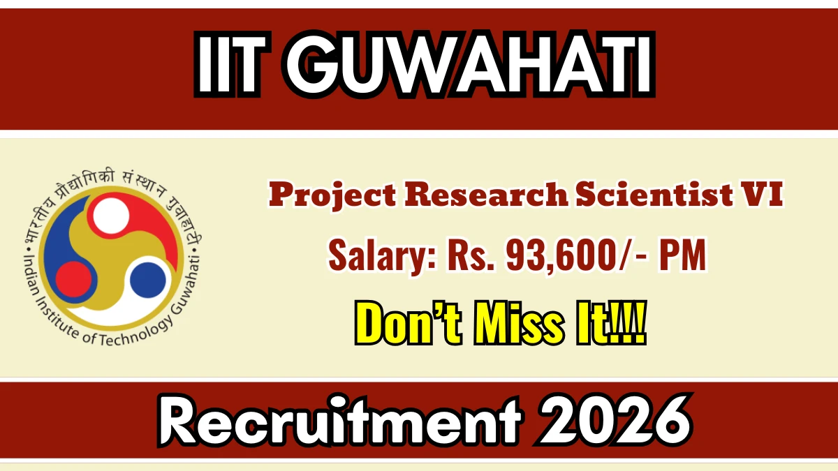 Indian Institute of Technology Guwahati (IIT Guwahati) Recruitment 2026: Indian Institute of Technology Guwahati has released the official notification for 1 Project Research Scientist VI posts, inviting applications from eligible candidates in Assam. This recruitment provides an excellent opportunity for candidates seeking stable and well-paid government jobs.