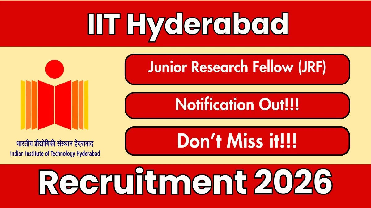 Indian Institute of Technology Hyderabad (IIT Hyderabad) Recruitment 2026: Indian Institute of Technology Hyderabad has released the official notification for Junior Research Fellow (JRF) posts, inviting applications from eligible candidates. This recruitment provides an excellent opportunity for candidates seeking research jobs.