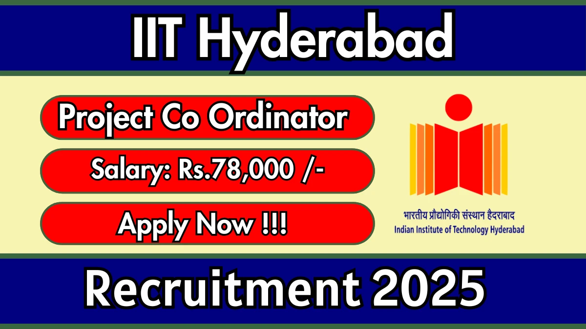Indian Institute of Technology Hyderabad (IIT Hyderabad) has released an official notification for the recruitment of 01 Project Co Ordinator Posts. Interested and eligible candidates can apply Online through the official IIT Hyderabad website. The last date to submit the application form is 22 December 2025. In this article, you’ll find the IIT Hyderabad Project Co Ordinator Posts recruitment details, including eligibility criteria, age limit, salary structure, selection process, application steps, and direct links to the official notification and Online application form.