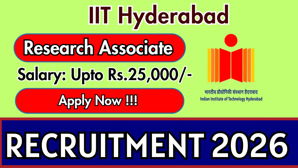 The Indian Institute of Technology Hyderabad (IIT Hyderabad) has released 01 Research Associate vacancies. Eligible candidates with Any Bachelors Degree, Any Masters Degree can apply online from January 07, 2026, to January 22, 2026, at iith.ac.in.