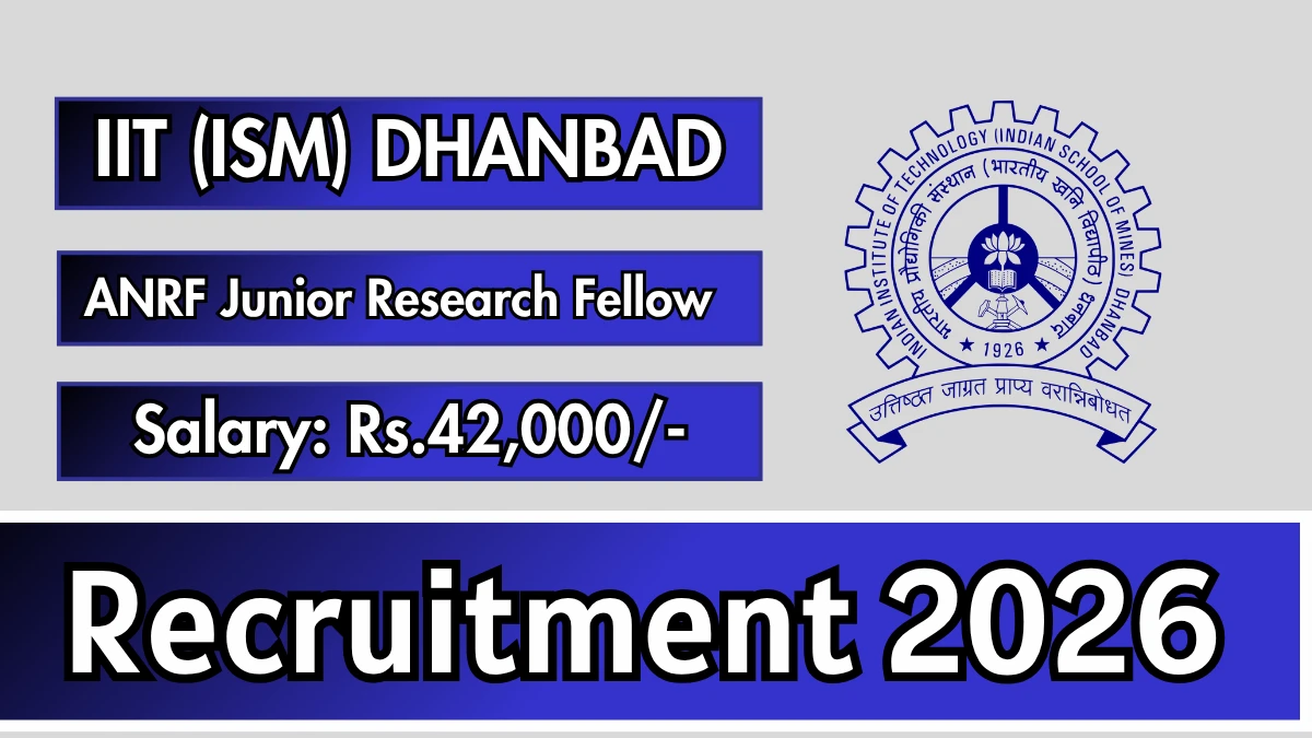 Indian Institute of Technology (ISM) Dhanbad (IIT (ISM) Dhanbad) ANRF Junior Research Fellow (ANRF JRF) Notification 2026 has been released on the official website of IIT (ISM) Dhanbad. A total of 1 vacancy has been announced through the IIT (ISM) Dhanbad ANRF Junior Research Fellow Recruitment 2026.