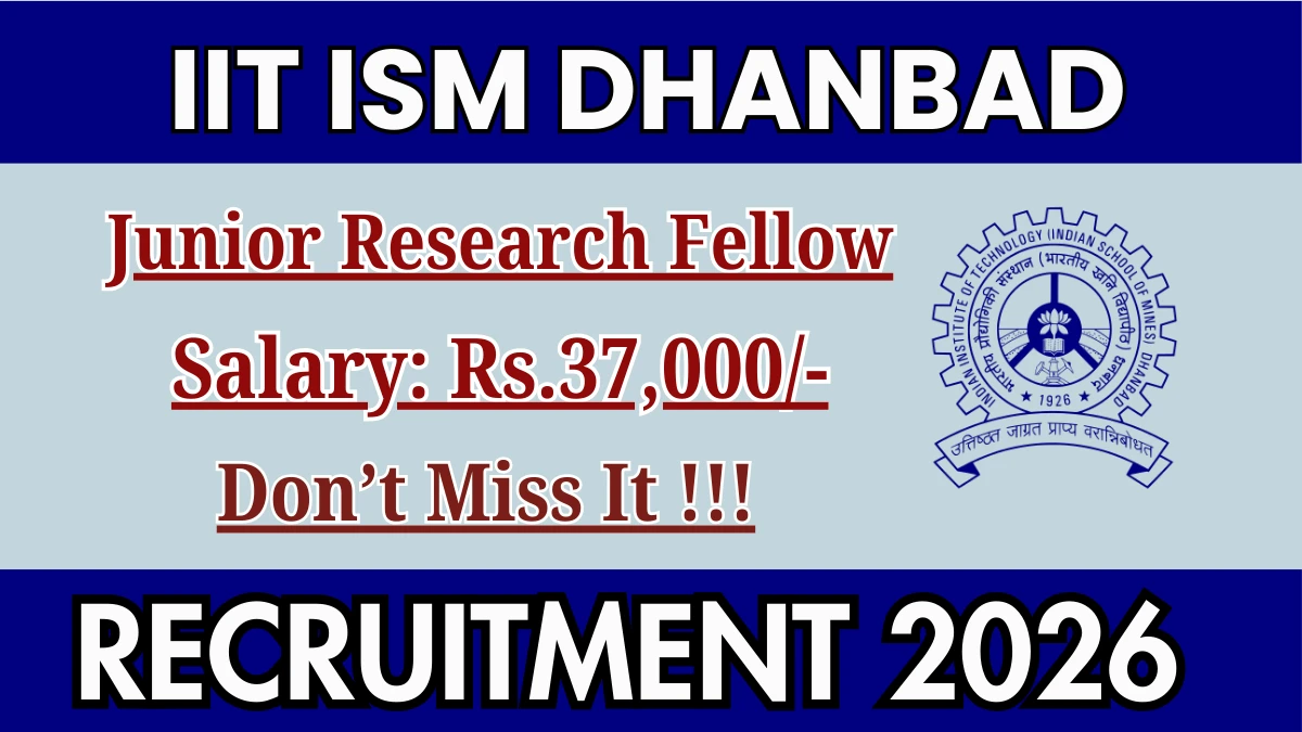 Indian Institute of Technology Dhanbad (IIT ISM Dhanbad) has released an official notification for the recruitment of 01 Junior Research Fellow Posts. Interested and eligible candidates can apply Offline through the official IIT ISM Dhanbad website. The last date to submit the application form is 17-02-2026. In this article, you’ll find the IIT ISM Dhanbad Junior Research Fellow Posts recruitment details, including eligibility criteria, age limit, salary structure, selection process, application steps, and direct links to the official notification and Offline application form.