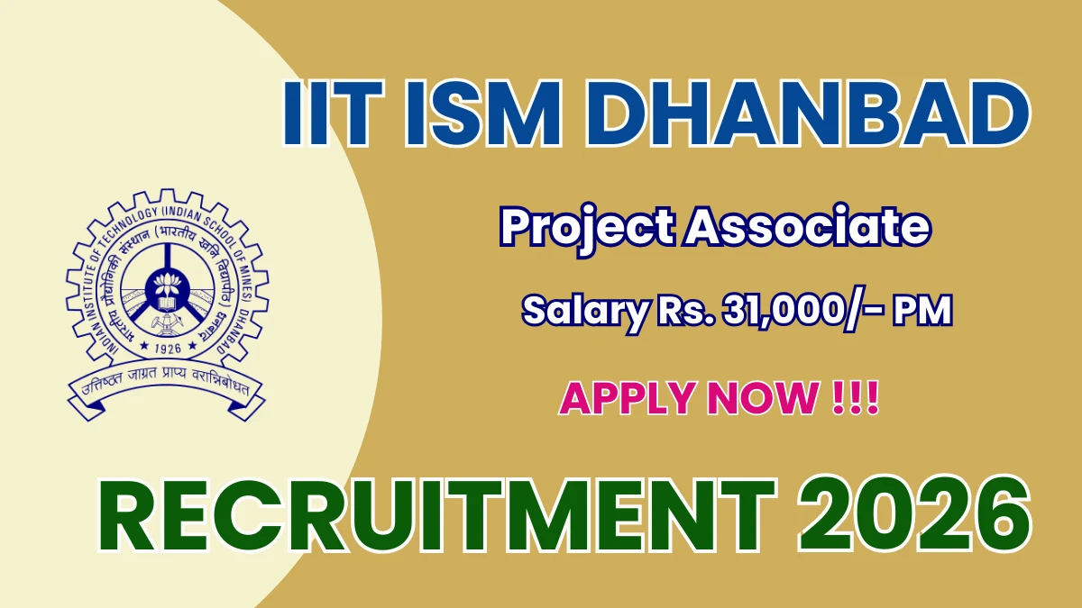 IIT Indian School of Mines Dhanbad (IIT ISM Dhanbad) Recruitment 2026: IIT Indian School of Mines Dhanbad has released the official notification for 1 Project Associate posts, inviting applications from eligible candidates in Jharkhand. This recruitment provides an excellent opportunity for candidates seeking stable and well-paid government jobs.