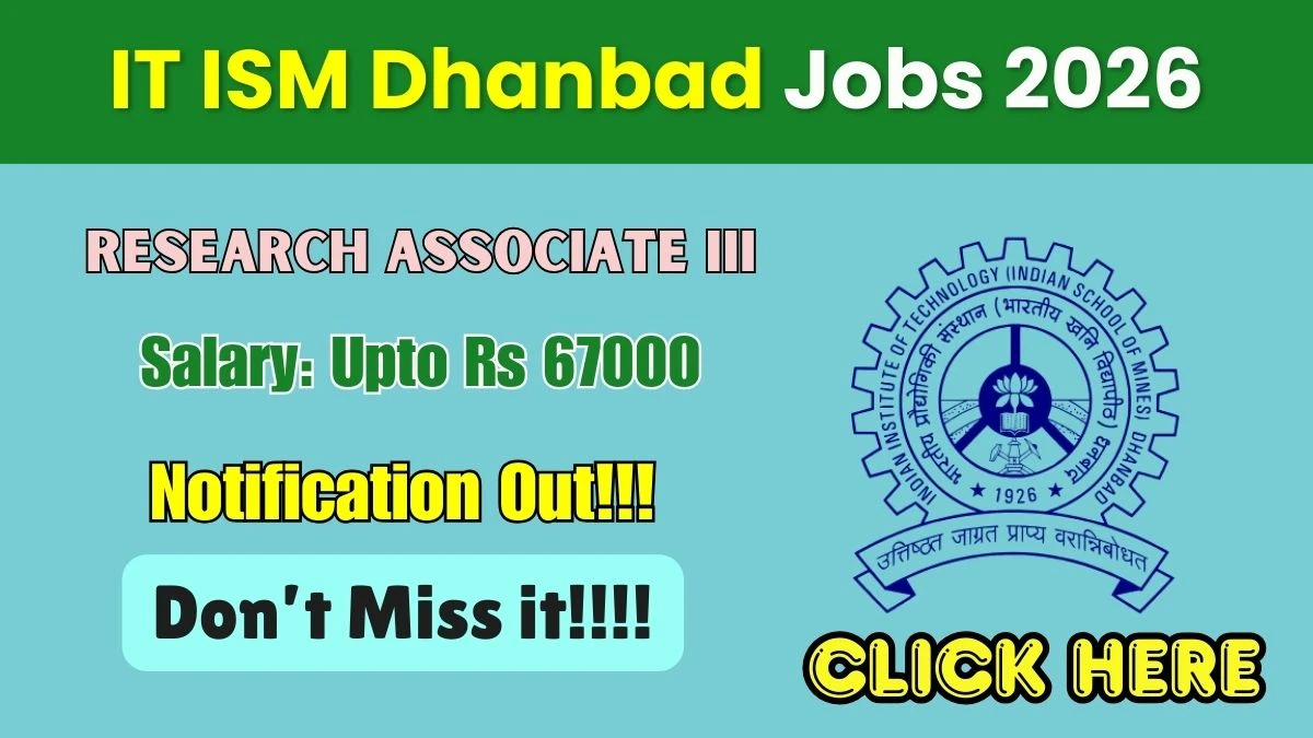 Indian Institute of Technology Dhanbad (IIT ISM Dhanbad) has released an official notification for the recruitment of 01 Research Associate III Posts. Interested and eligible candidates can apply Online through the official IIT ISM Dhanbad website. The last date to submit the application form is 23-02-2026. In this article, you’ll find the IIT ISM Dhanbad Research Associate III Posts recruitment details, including eligibility criteria, age limit, salary structure, selection process, application steps, and direct links to the official notification and Online application form.