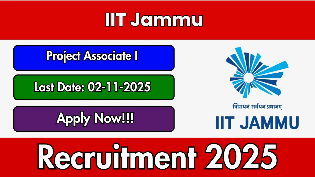 Indian Institute of Technology Jammu (IIT Jammu) has released an official notification for the recruitment of 01 Project Associate I Posts. Interested and eligible candidates can apply Offline through the official IIT Jammu website. The last date to submit the application form is 02-11-2025. In this article, you’ll find the IIT Jammu Project Associate I Posts recruitment details, including eligibility criteria, age limit, salary structure, selection process, application steps, and direct links to the official notification and Offline application form.