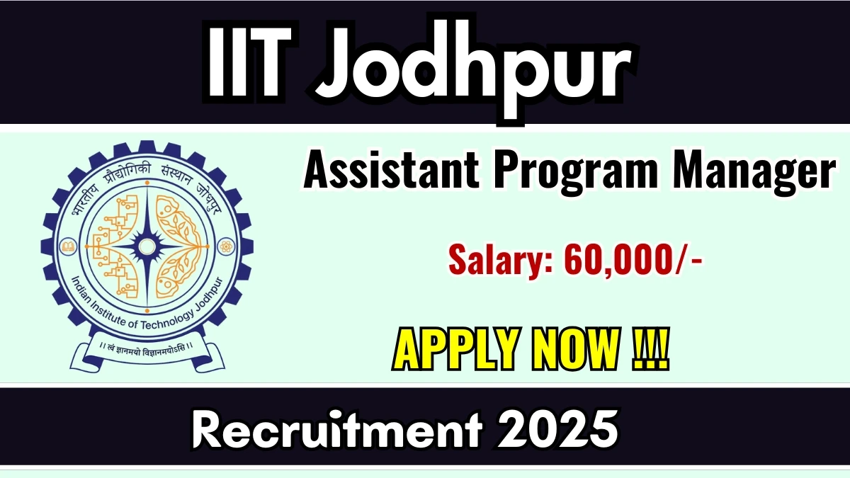 Indian Institute of Technology Jodhpur (IIT Jodhpur) has released an official notification for the recruitment of 01 Assistant Program Manager Posts. Interested and eligible candidates can apply Online through the official IIT Jodhpur website. The last date to submit the application form is 08-10-2025. In this article, you’ll find the IIT Jodhpur Assistant Program Manager Posts recruitment details, including eligibility criteria, age limit, salary structure, selection process, application steps, and direct links to the official notification and Online application form.
