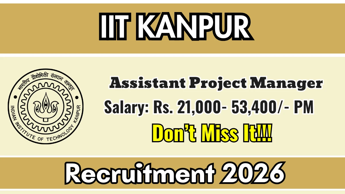 Indian Institute of Technology Kanpur (IIT Kanpur) Recruitment 2026: Indian Institute of Technology Kanpur has released the official notification for 1 Assistant Project Manager posts, inviting applications from eligible candidates. This recruitment provides an excellent opportunity for candidates seeking government jobs.