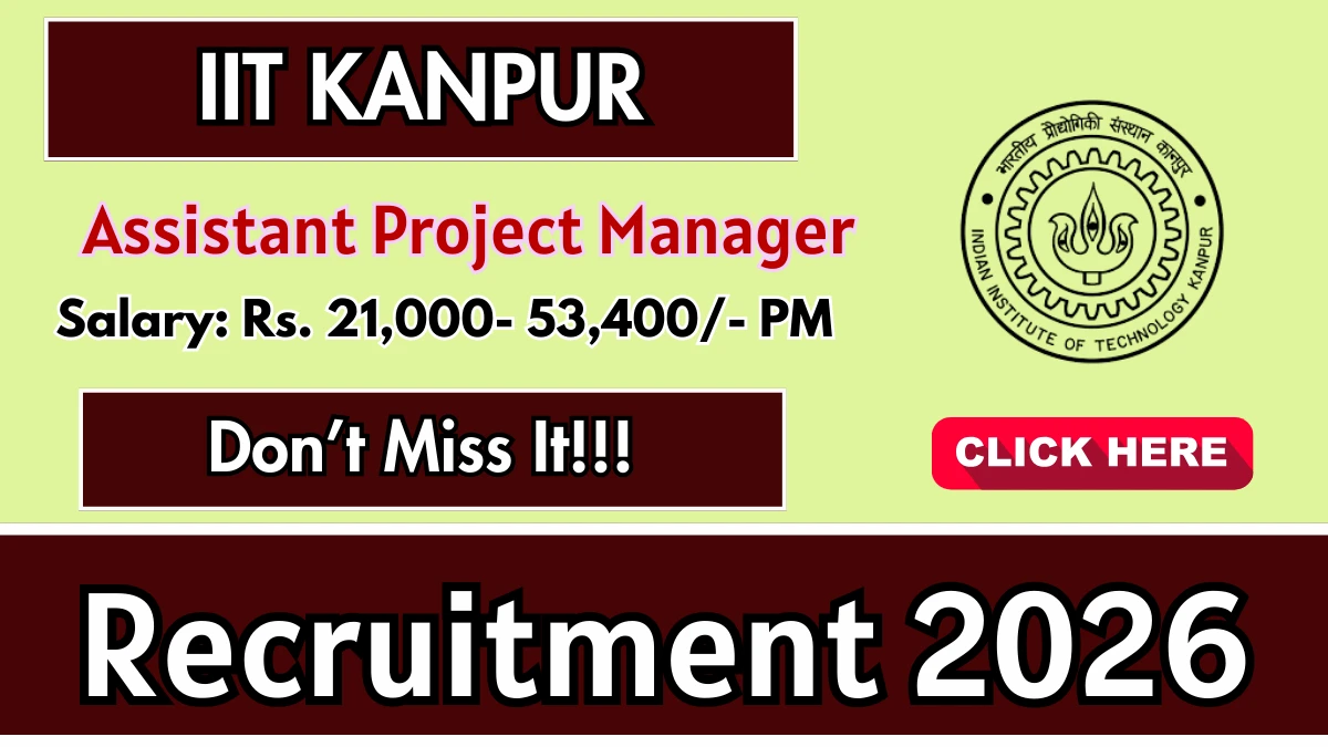 Indian Institute of Technology Kanpur (IIT Kanpur) Recruitment 2026: Indian Institute of Technology Kanpur has released the official notification for 1 Assistant Project Manager posts, inviting applications from eligible candidates. This recruitment provides an excellent opportunity for candidates seeking government jobs.