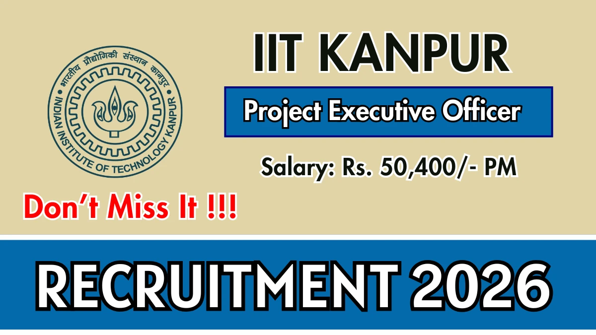 Indian Institute of Technology Kanpur (IIT Kanpur) has released an official notification for the recruitment of 01 Project Executive Officer Posts. Interested and eligible candidates can apply Online through the official IIT Kanpur website. The last date to submit the application form is 28-02-2026. In this article, you’ll find the IIT Kanpur Project Executive Officer Posts recruitment details, including eligibility criteria, age limit, salary structure, selection process, application steps, and direct links to the official notification and Online application form.
