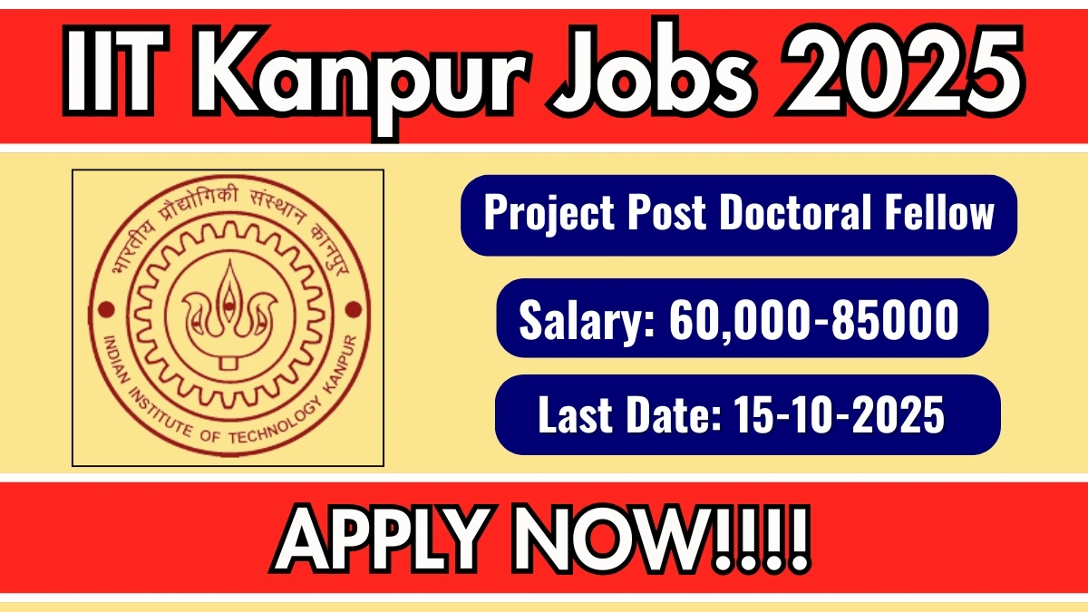 Indian Institute of Technology Kanpur (IIT Kanpur) has released an official notification for the recruitment of Not Mentioned Project Post Doctoral Fellow Posts. Interested and eligible candidates can apply Offline through the official IIT Kanpur website. The last date to submit the application form is 15-10-2025. In this article, you’ll find the IIT Kanpur Project Post Doctoral Fellow Posts recruitment details, including eligibility criteria, age limit, salary structure, selection process, application steps, and direct links to the official notification and Offline application form.