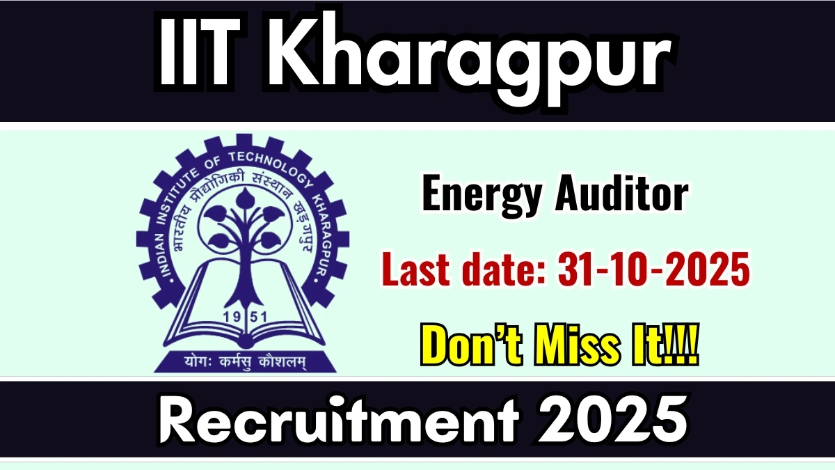 Indian Institute of Technology Kharagpur (IIT Kharagpur) has released an official notification for the recruitment of Not Mentioned Energy Auditor Posts. Interested and eligible candidates can apply Online through the official IIT Kharagpur website. The last date to submit the application form is 31-10-2025. In this article, you’ll find the IIT Kharagpur Energy Auditor Posts recruitment details, including eligibility criteria, age limit, salary structure, selection process, application steps, and direct links to the official notification and Online application form.