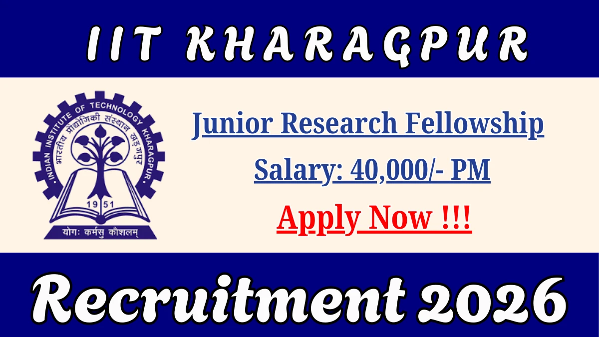 Indian Institute of Technology Kharagpur (IIT Kharagpur) has released an official notification for the recruitment of 1 Junior Research Fellowship Posts. Interested and eligible candidates can apply Online through the official IIT Kharagpur website. The last date to submit the application form is 15-03-2026.