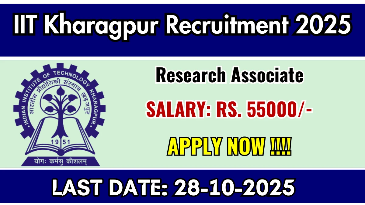 Indian Institute of Technology Kharagpur (IIT Kharagpur) has released an official notification for the recruitment of 01 Research Associate Posts. Interested and eligible candidates can apply Online through the official IIT Kharagpur website. The last date to submit the application form is 28-10-2025. In this article, you’ll find the IIT Kharagpur Research Associate Posts recruitment details, including eligibility criteria, age limit, salary structure, selection process, application steps, and direct links to the official notification and Online application form.