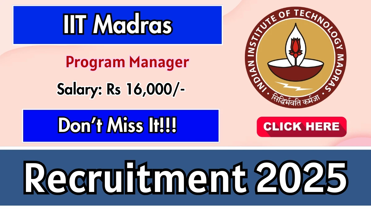 Indian Institute of Technology Madras (IIT Madras) has released an official notification for the recruitment of 01 Program Manager Posts. Interested and eligible candidates can apply Online through the official IIT Madras website. The last date to submit the application form is 16-10-2025. In this article, you’ll find the IIT Madras Program Manager Posts recruitment details, including eligibility criteria, age limit, salary structure, selection process, application steps, and direct links to the official notification and Online application form.