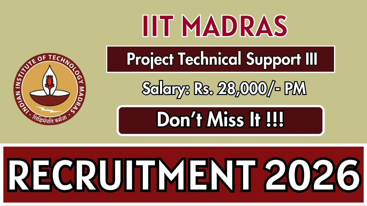 Indian Institute of Technology Madras (IIT Madras) has released an official notification for the recruitment of 01 Project Technical Support III Posts. Interested and eligible candidates can apply Online through the official IIT Madras website. The last date to submit the application form is 08-03-2026. In this article, you’ll find the IIT Madras Project Technical Support III Posts recruitment details, including eligibility criteria, age limit, salary structure, selection process, application steps, and direct links to the official notification and Online application form.
