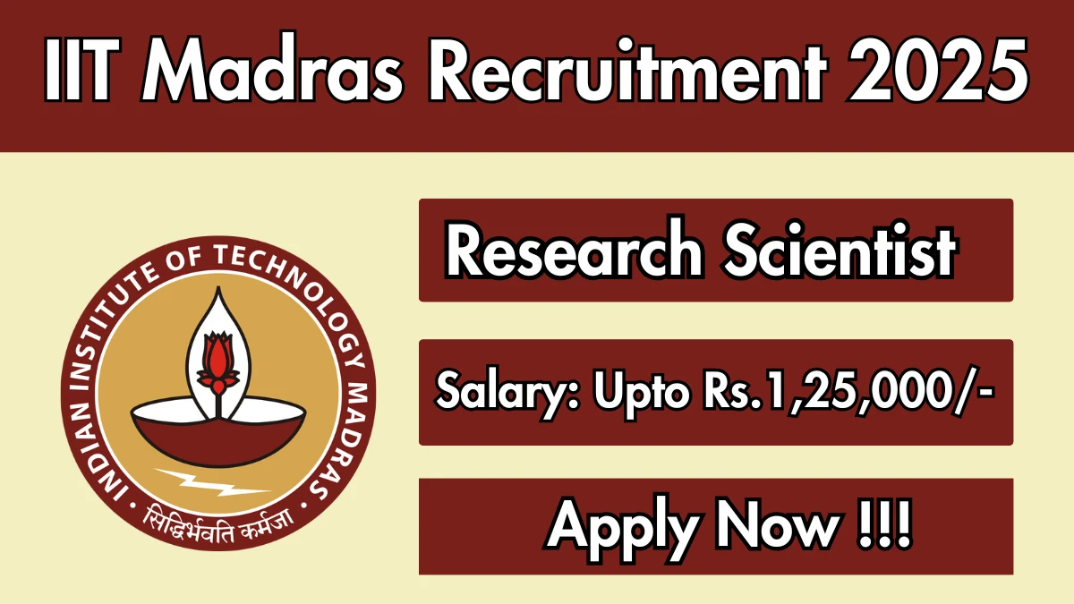 Indian Institute of Technology Madras (IIT Madras) has released an official notification for the recruitment of 01 Research Scientist Posts. Interested and eligible candidates can apply Online through the official IIT Madras website. The last date to submit the application form is 30-12-2025. In this article, you’ll find the IIT Madras Research Scientist Posts recruitment details, including eligibility criteria, age limit, salary structure, selection process, application steps, and direct links to the official notification and Online application form.