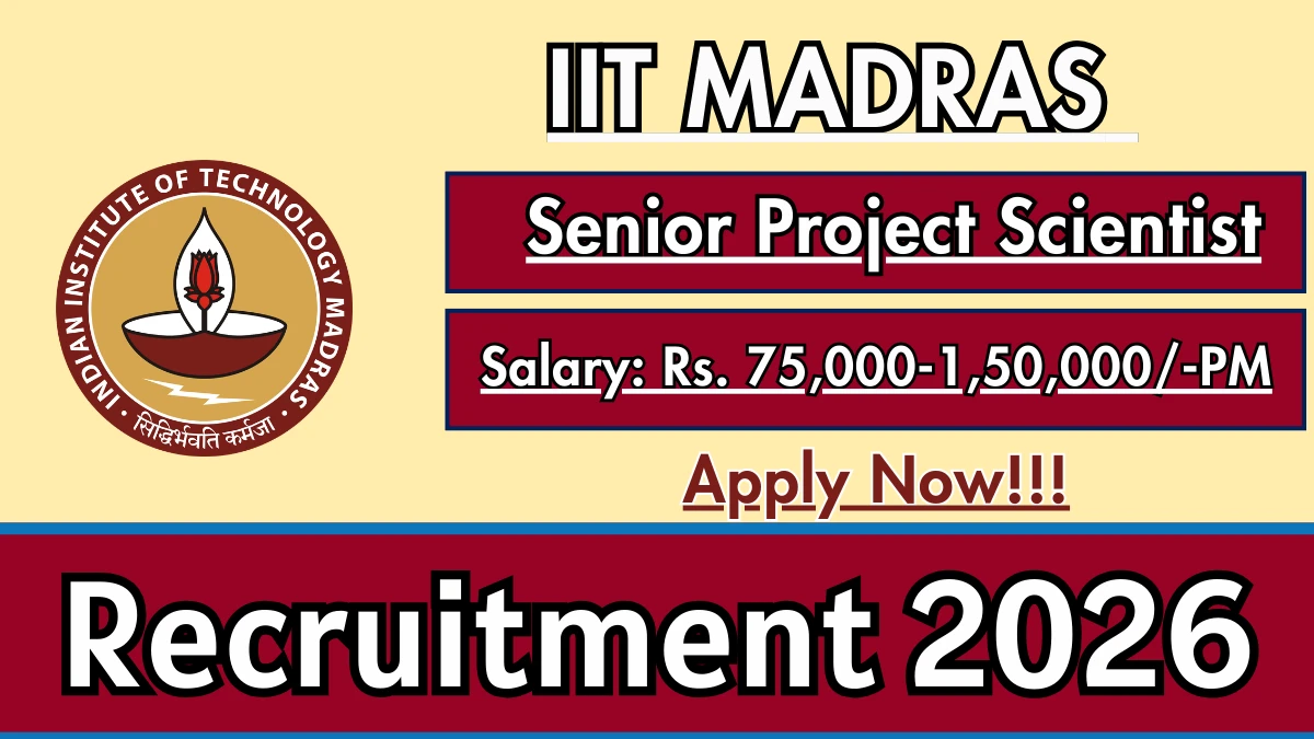 Indian Institute of Technology Madras (IIT Madras) has released an official notification for the recruitment of 01 Senior Project Scientist Posts. Interested and eligible candidates can apply Online through the official IIT Madras website. The last date to submit the application form is 10-03-2026. In this article, you’ll find the IIT Madras Senior Project Scientist Posts recruitment details, including eligibility criteria, age limit, salary structure, selection process, application steps, and direct links to the official notification and Online application form.
