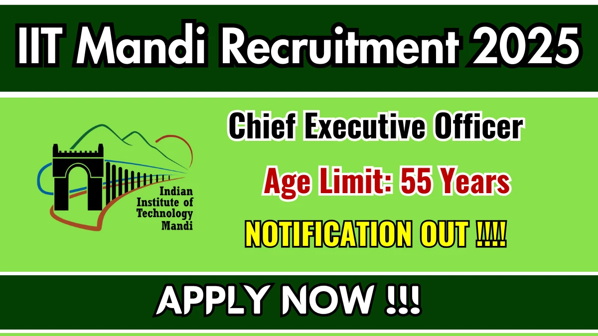 Indian Institute of Technology Mandi (IIT Mandi) has released an official notification for the recruitment of Chief Executive Officer Posts. Interested and eligible candidates can apply Offline through the official IIT Mandi website. The last date to submit the application form is 30-11-2025. In this article, you’ll find the IIT Mandi Chief Executive Officer Posts recruitment details, including eligibility criteria, age limit, salary structure, selection process, application steps, and direct links to the official notification and Offline application form.