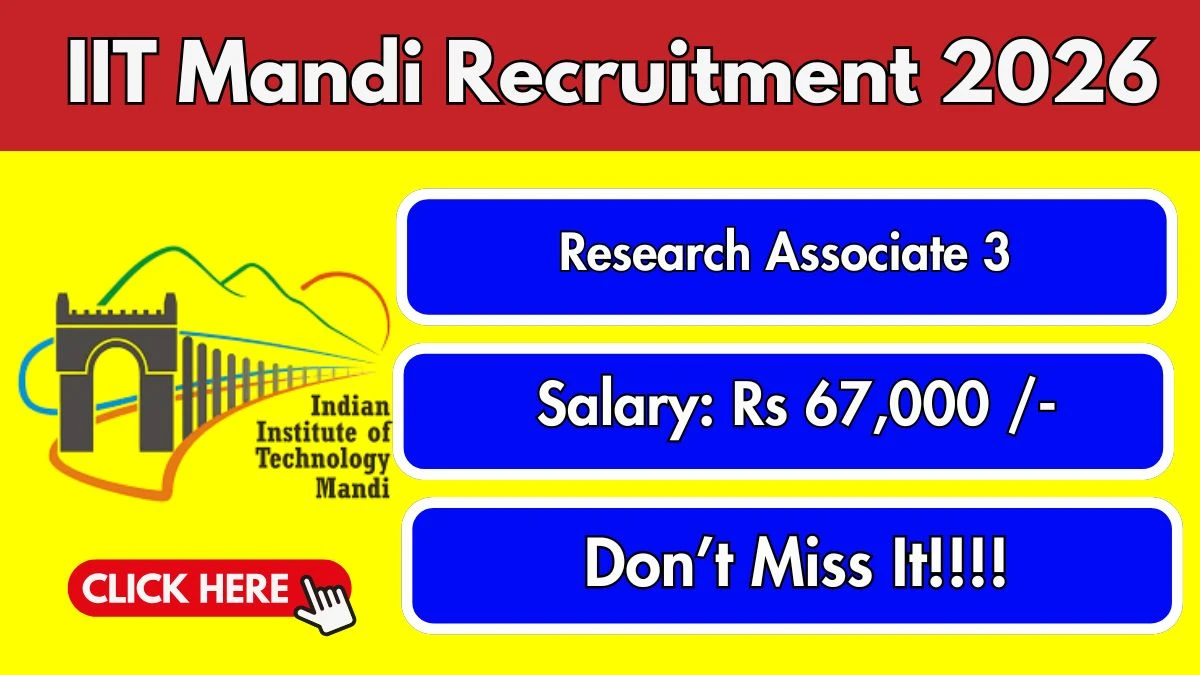 Indian Institute of Technology Mandi (IIT Mandi) has released an official notification for the recruitment of 01 Research Associate 3 Posts. Interested and eligible candidates can apply Online through the official IIT Mandi website. The last date to submit the application form is 15-02-2026. In this article, you’ll find the IIT Mandi Research Associate 3 Posts recruitment details, including eligibility criteria, age limit, salary structure, selection process, application steps, and direct links to the official notification and Online application form.