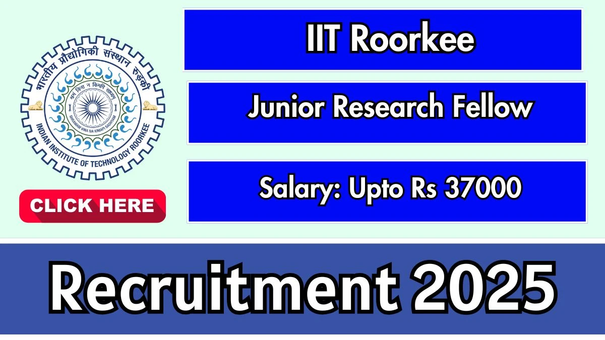 The Indian Institute of Technology Roorkee (IIT Roorkee) has announced a recruitment notification for the position of Junior Research Fellow (JRF). The institute is offering 1 vacancy for this post, with a monthly salary of ₹37,000. Candidates with qualifications in B.Tech, M.Tech, M.Sc, or an equivalent degree in Chemical Engineering, Chemical Technology, or related Applied Disciplines in Engineering and Science, and who have qualified GATE, are eligible to apply. The last date for submitting the application is 31st December 2025.