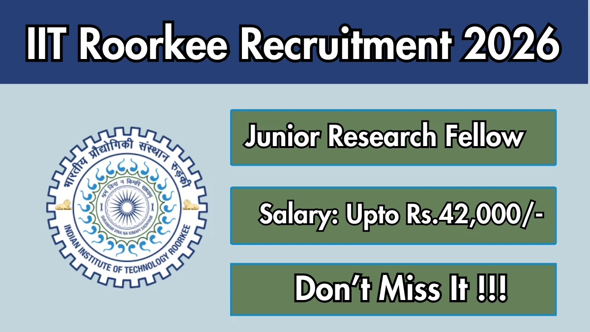 Indian Institute of Technology Roorkee (IIT Roorkee) has released an official notification for the recruitment of 03 Junior Research Fellow Posts. Interested and eligible candidates can apply Online through the official IIT Roorkee website. The last date to submit the application form is 15-03-2026. In this article, you’ll find the IIT Roorkee Junior Research Fellow Posts recruitment details, including eligibility criteria, age limit, salary structure, selection process, application steps, and direct links to the official notification and Online application form.